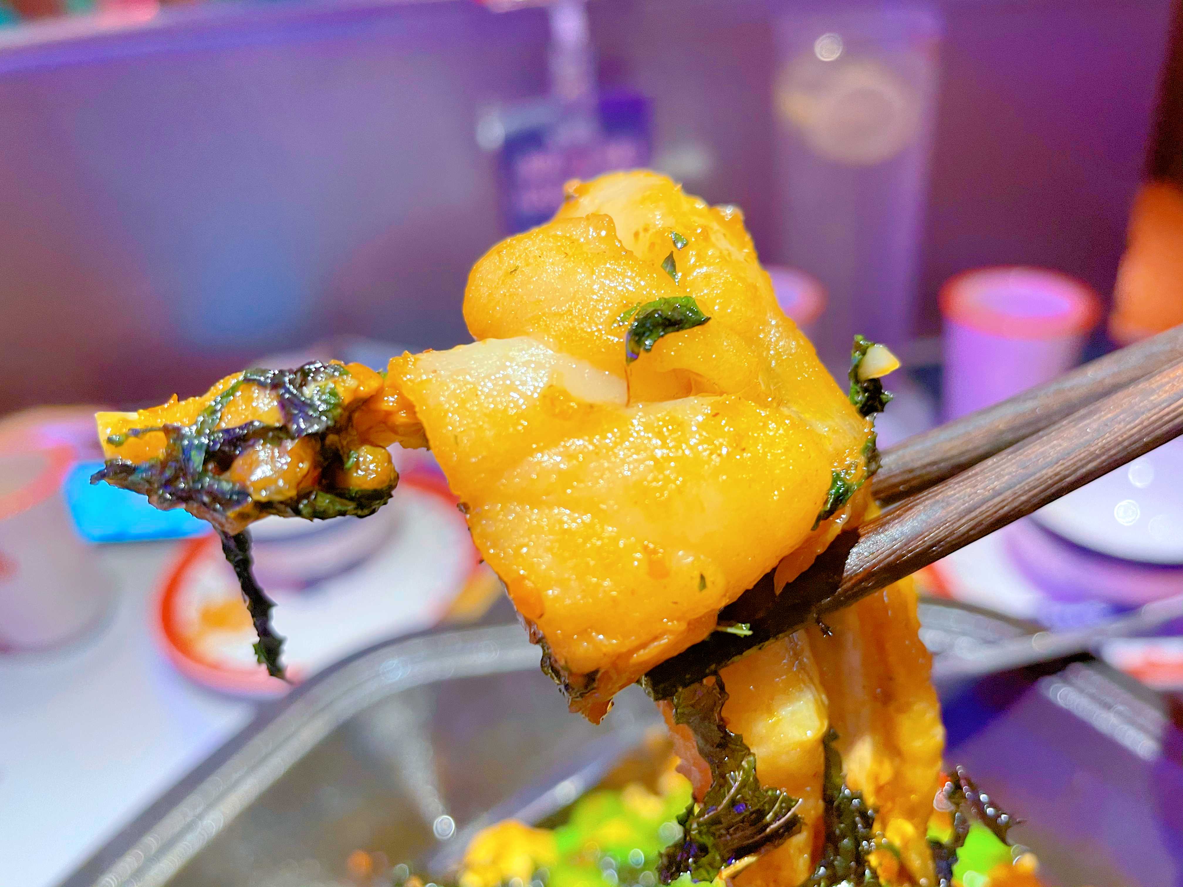 这次菜品也进行了全新升级,最招牌的紫苏味牛蛙锅,加大了紫苏的量,所以在蛙锅上来之后,更香更浓的紫苏香气扑鼻,让人沉浸在浓香里,被幸福的感觉包围,还没等好好拍照晒一下,就迫不及待一口下去,入口肉滑香嫩,满满的肉欲融化在口中,对于干饭人来说,简直太上头了!
