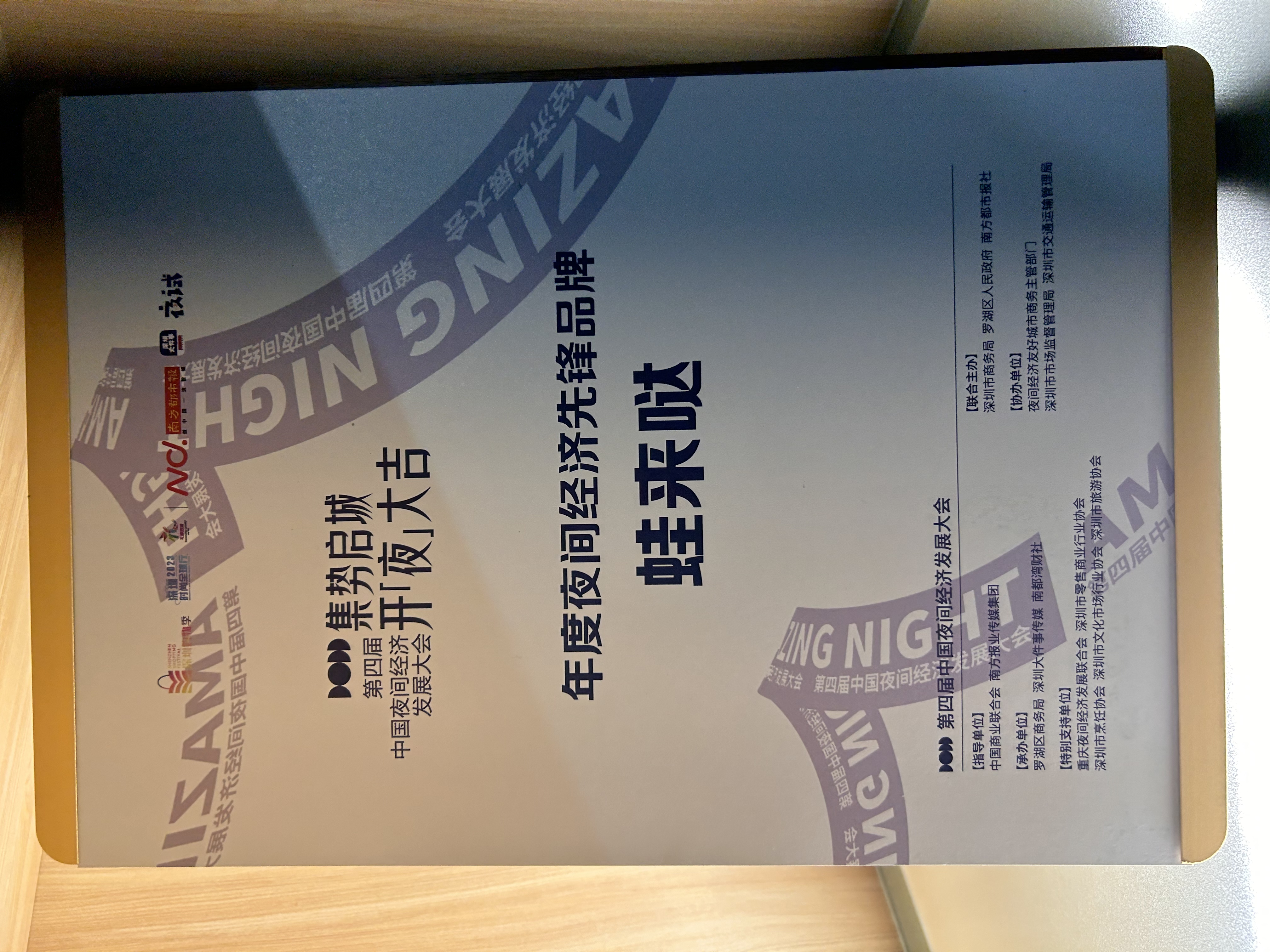 10月20日,由深圳市商务局、罗湖区人民政府、南方都市报社联合举办的“2023深圳购物季”重点主题活动——“集势启城 开「夜」大吉”第四届中国夜间经济发展大会,在罗湖东门步行街西广场正式启动。大会上,蛙来哒超级夜市荣获商务局“城市夜经济先锋品牌”称号!