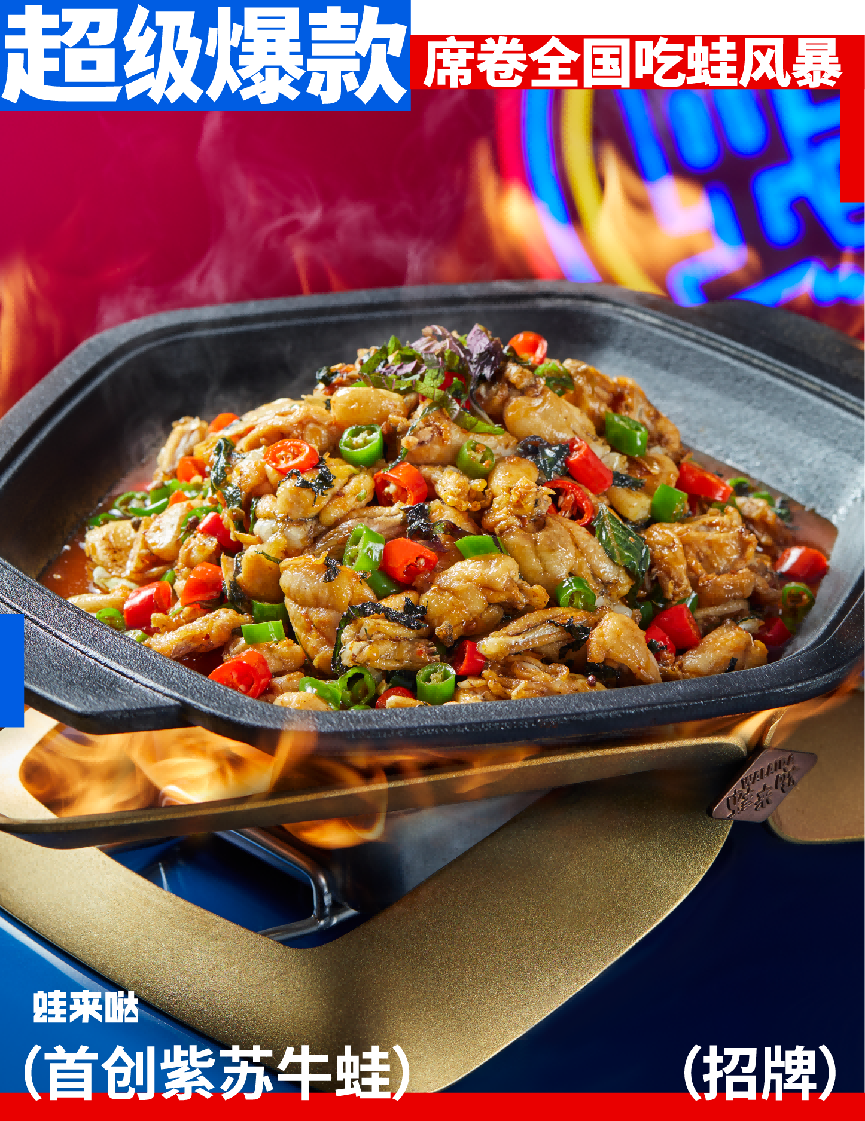 而在众多的细分品类中,牛蛙品类市场的迅速崛起引起了尤为广泛的关注。尤其是以蛙来哒等品牌为代表的牛蛙餐饮,其火爆的市场表现吸引了大量消费者的目光,也引发了行业内外的广泛关注,进一步推动了牛蛙餐饮市场的蓬勃发展。一直以来,蛙来哒坚定牛蛙品类创新…